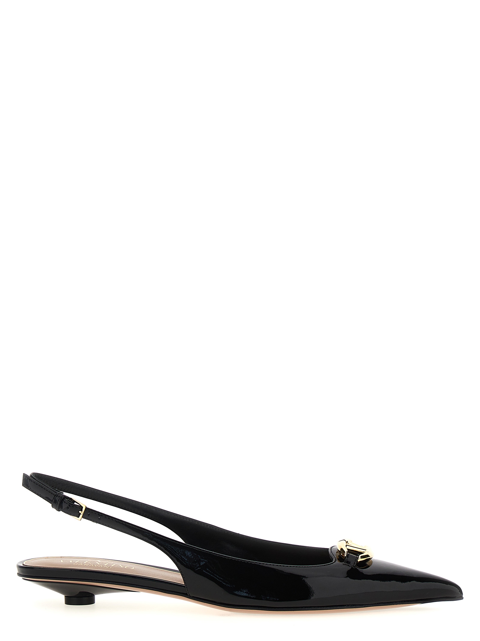 ‘Vlogo Moon’ leather slingbacks with gold logo at the front, kitten heel, adjustable strap.