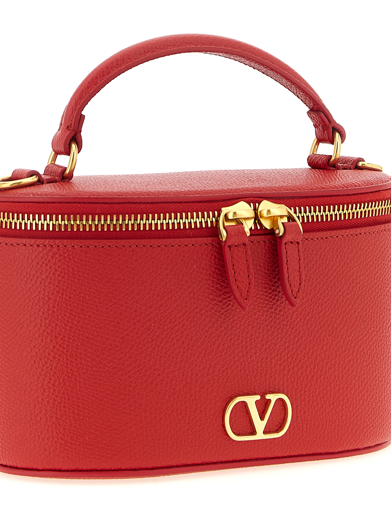 Vanity mini crossbody bag in garnet calf leather, metallic Vlogo Signature logo with antiqued effect on the front, fixed handle, zip closure, hard bottom, nappa lining, adjustable and removable shoulder strap.