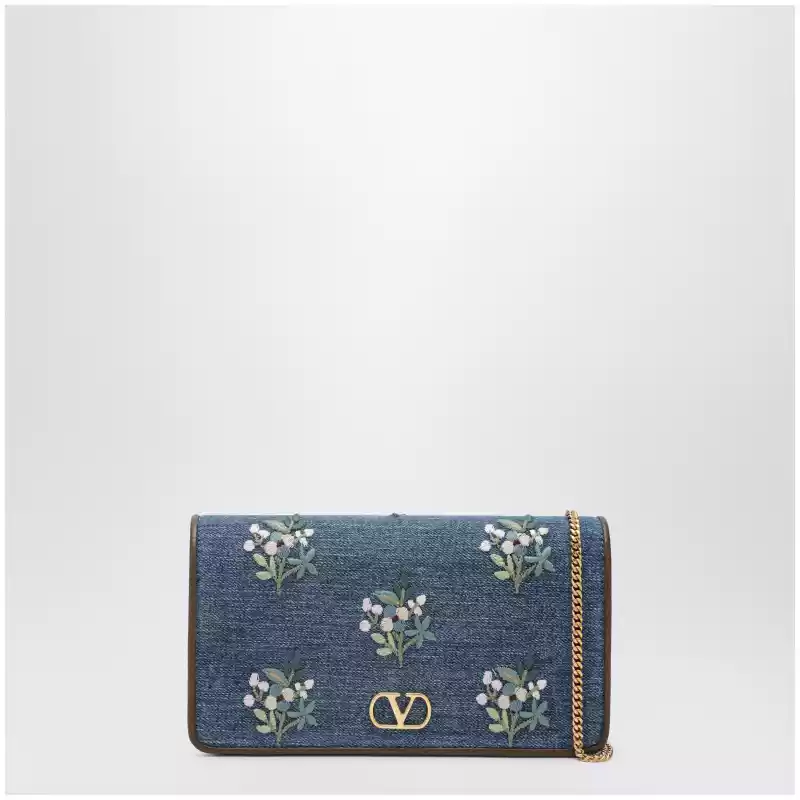 Valentino Garavani VLogo Signature mini crossbody bag in denim with floral embroidery