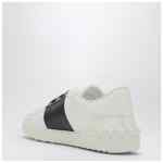 Valentino Garavani sneakers in white calfskin, characterized by a contrasting colour band, rounded toe, lace-up closure, decorative studs, and rubber sole.