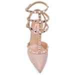 Valentino pumps powder leather Rockstud detailing stiletto heel buckle-fastening ankle strap pointed toe gold-tone hardware branded insole The full look includes Valentino Garavani accessories. Rockstud leather pumps