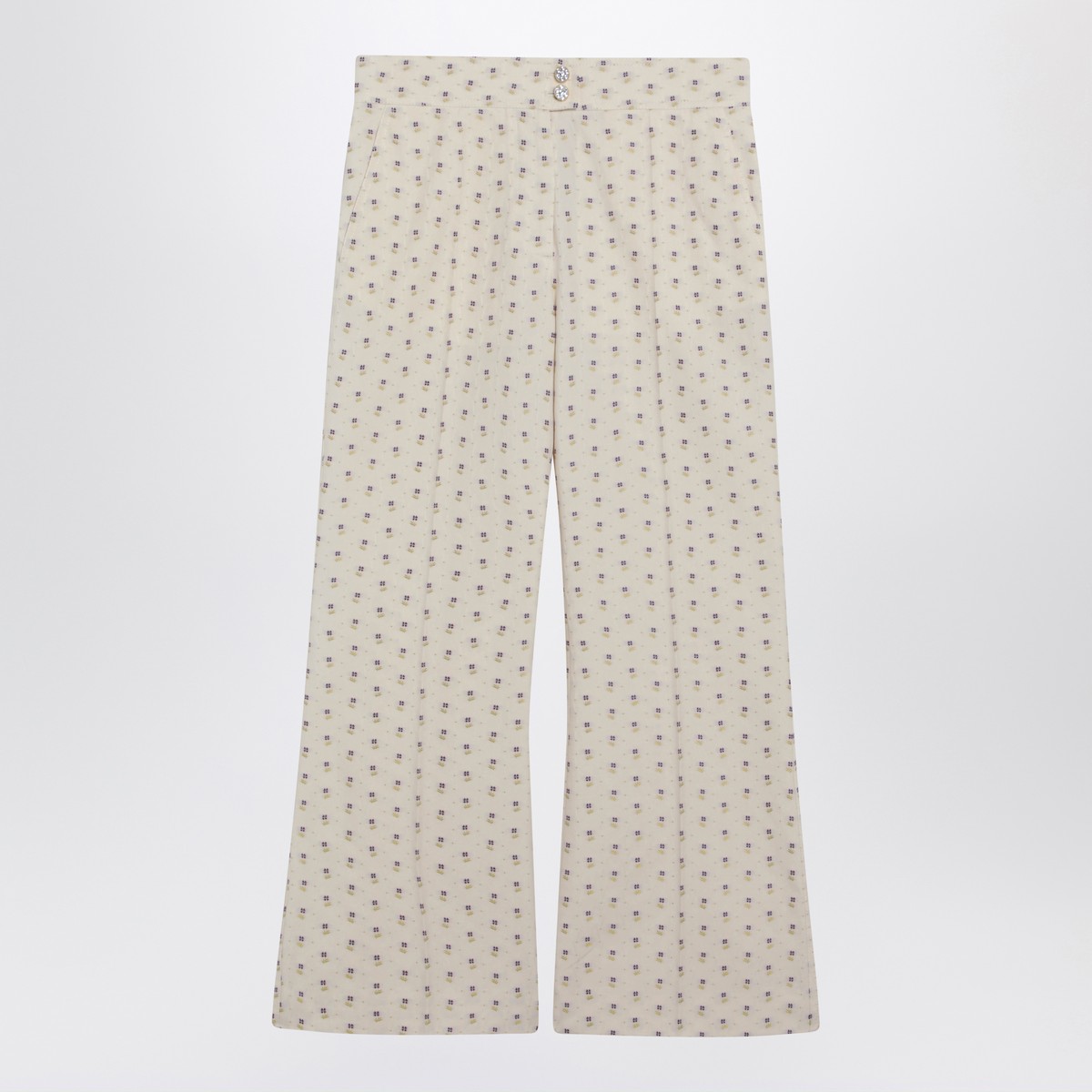 Valentino ivory cotton-blend trousers, featuring all-over floral pattern, front zip and double jewel button fastening, two side welt pockets, two rear welt pockets and pressed crease on the front.