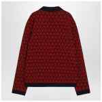 Valentino cardigan in virgin wool with Toute la V jacquard pattern all over in red and navy blue, featuring a V-neck, long sleeves, front closure with golden buttons, two front pockets, ribbed edges, and regular fit.