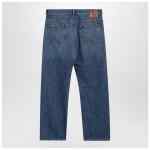 Medium-blue slightly washed jeans by Valentino in cotton denim, featuring front zip and button closure, belt loops, five classic pockets, and back logo patch.