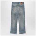 Valentino medium blue washed-effect cotton denim jeans, featuring front zip and button closure, belt loops, five classic pockets and rear logo patch.