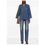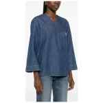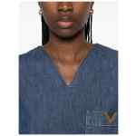 blue V-neck chest patch pocket long sleeves contrast stitching VLogo Signature denim blouse