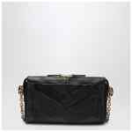 Valentino Garavani small black nappa leather crossbody bag with chevron pattern, featuring an adjustable chain shoulder strap with leather insert, enamelled feline heads embellished with Swarovski crystals, antique brass-finish metal VLogo Signature on the front, double zip closure, one internal flat pocket and one zip pocket.