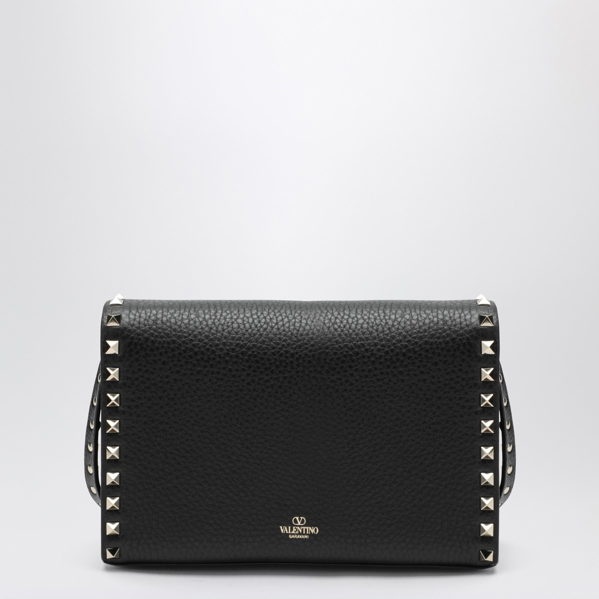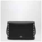 Valentino Garavani black embossed leather crossbody bag, featuring all-over Rockstud embellishments, adjustable shoulder strap, front flap with turn-lock closure and one internal flat pocket.