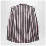 Pink and black striped silk shirt by Valentino, featuring front button closure, long sleeves with buttoned cuffs, and neck tie scarf.