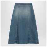 Blue washed-out cotton denim midi skirt from Valentino featuring a high waist, a front button fastening and two side pockets.