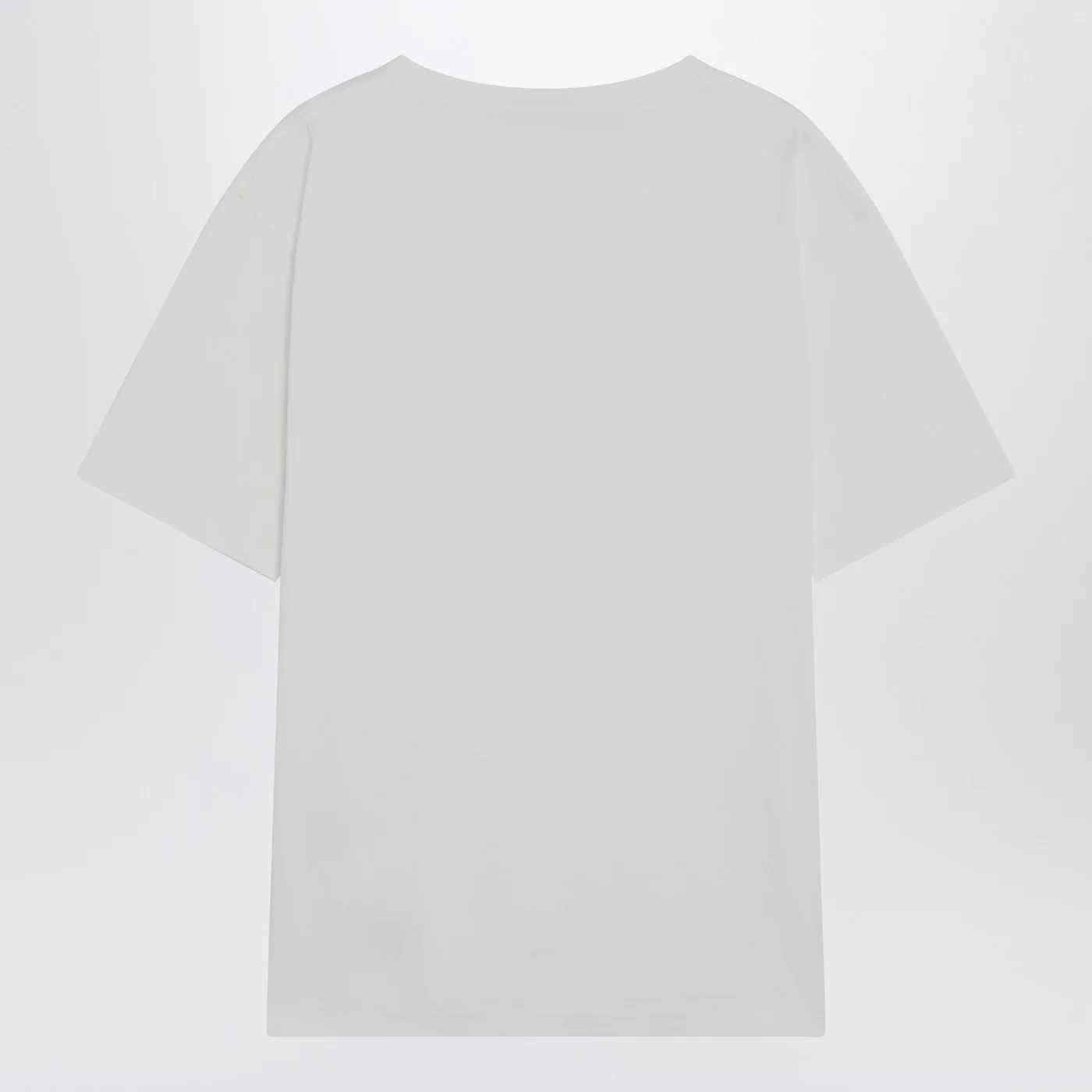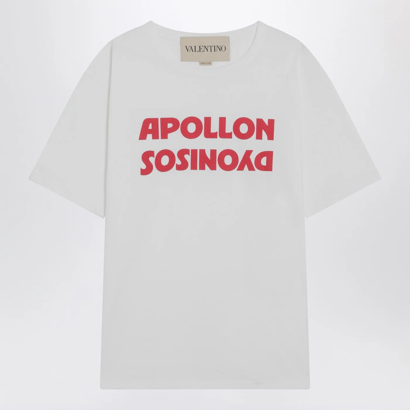 Valentino white cotton T-shirt featuring ribbed crewneck short sleeves and contrasting red ApollonDionysos print on the chest.
