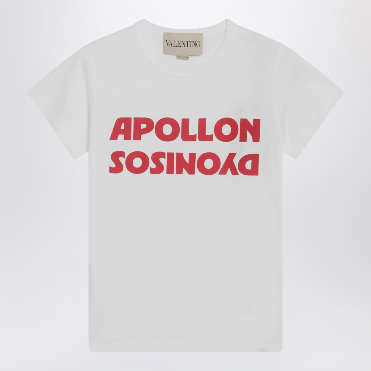 White cotton T-shirt by Valentino, featuring ribbed crew neck, short sleeves, red contrasting Apollon/Dionysus print on the chest, and regular fit.