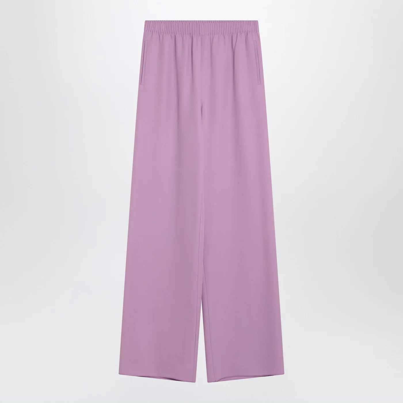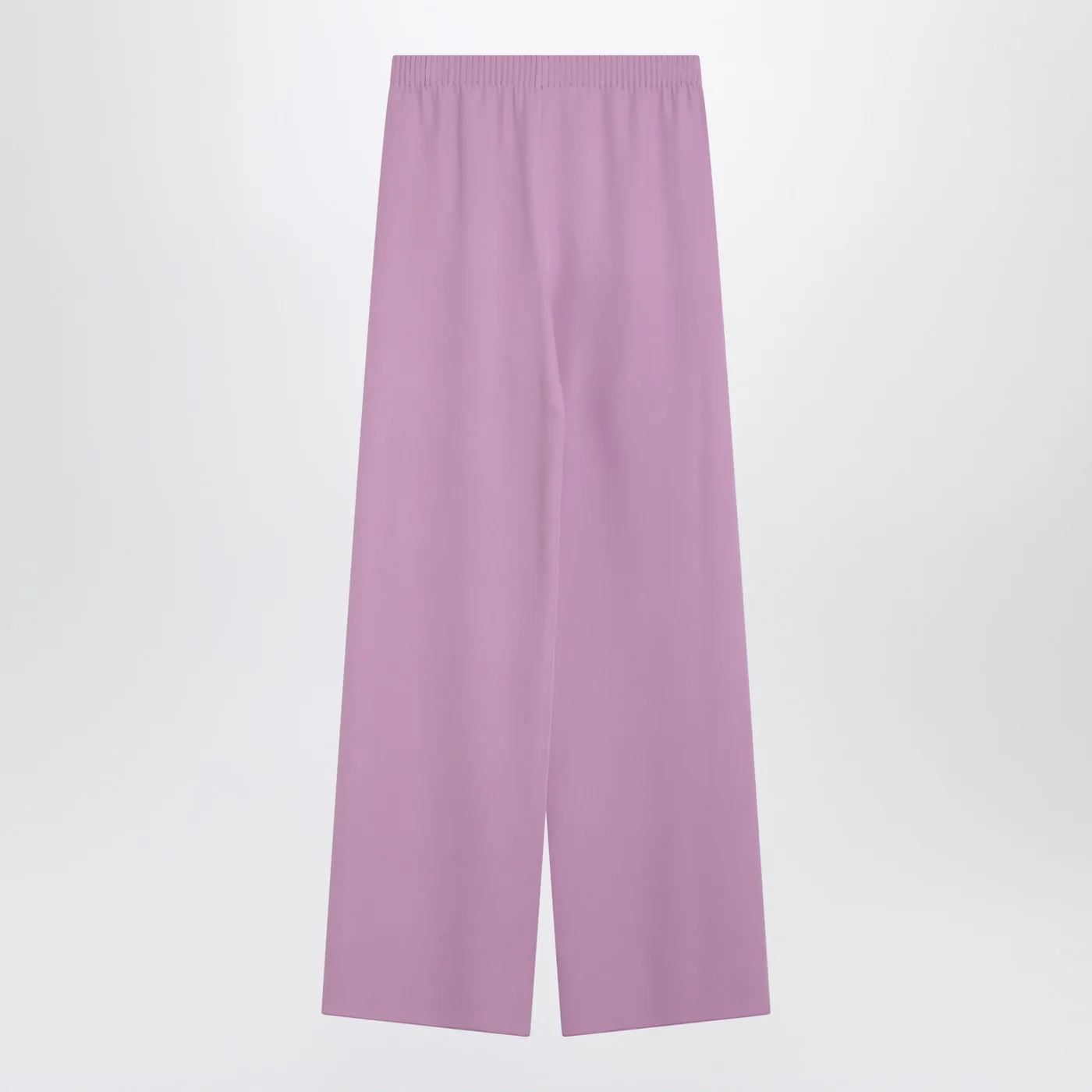 Wide pants by Valentino in lilac pink silk characterized by a high elasticized waist and two side welt pockets.