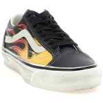 Premium old skool 36′ hammered leather sneakers with ‘flames’ graphics and laminated leather detail, Contrast stitching, Vulcanized structure, Low-top design, Padded collar, Higher sole sides, Ribbon with original 90s osnaburg reinforcement, Sola foam all-day-comfort (adc) insole, Iconic used-effect midsole sidestripe™, Rubber waffle sole. Size and Fit – Us men
