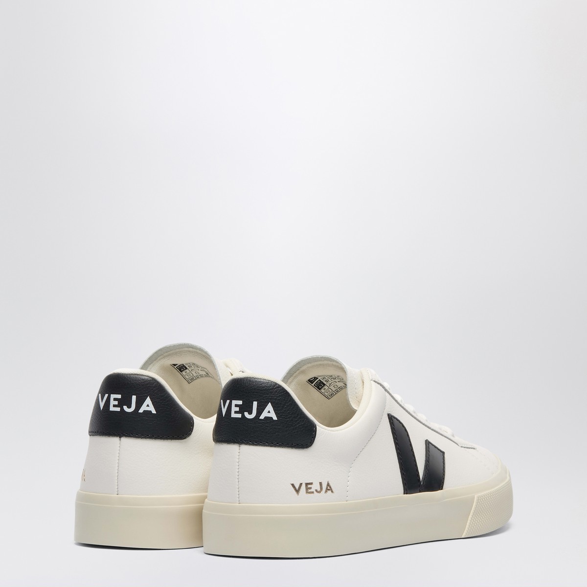 Veja sneakers in white organic leather, featuring a round toe, lace-up closure, black leather side V, black heel tab with logo lettering and rubber sole.