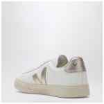 Veja sneakers in white organic leather, featuring a round toe, lace-up closure, platinum leather side V, platinum heel tab with logo lettering and rubber sole.