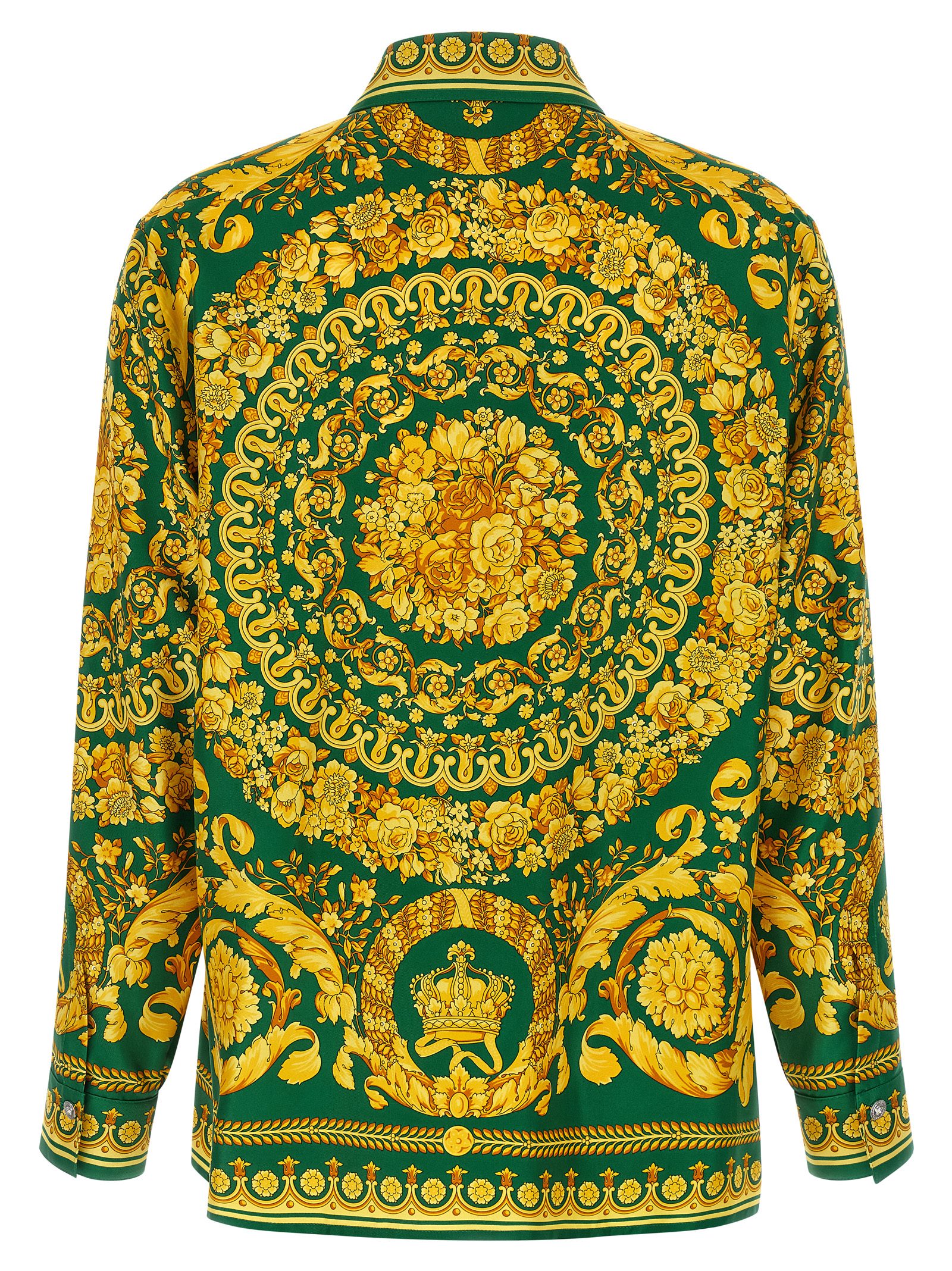 Silk shirt with all-over ‘Baroque’ print, concealed front button closure, long sleeves with cuffs.