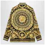 Silk twill shirt by Versace, featuring a black and gold Barocco print, pointed collar, concealed front button closure, Medusa button, long sleeves and buttoned cuffs.