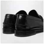 Black leather Versace loafers, featuring a rounded toe, strap with Medusa 95 hardware and leather sole.