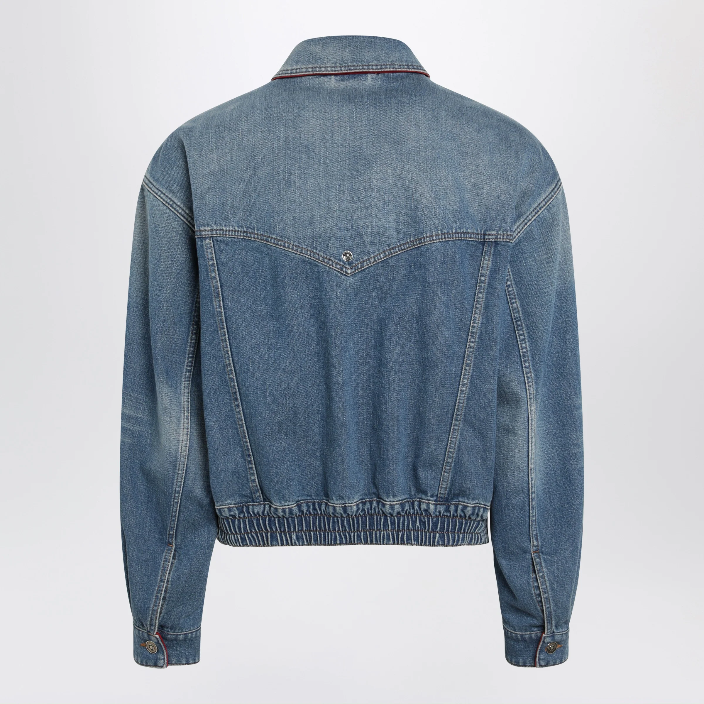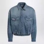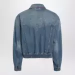 Versace Blue cotton denim jacket with red leather details