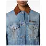 light blue brown collar button fastening chest pockets front pockets Denim cotton jacket