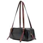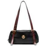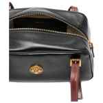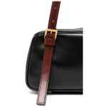 black and brown gold-tone hardware adjustable strap top zip fastening metal appliqué rectangular shape This piece comes complete with a protective dust bag. Emblème small leather shoulder bag.