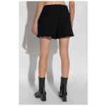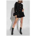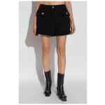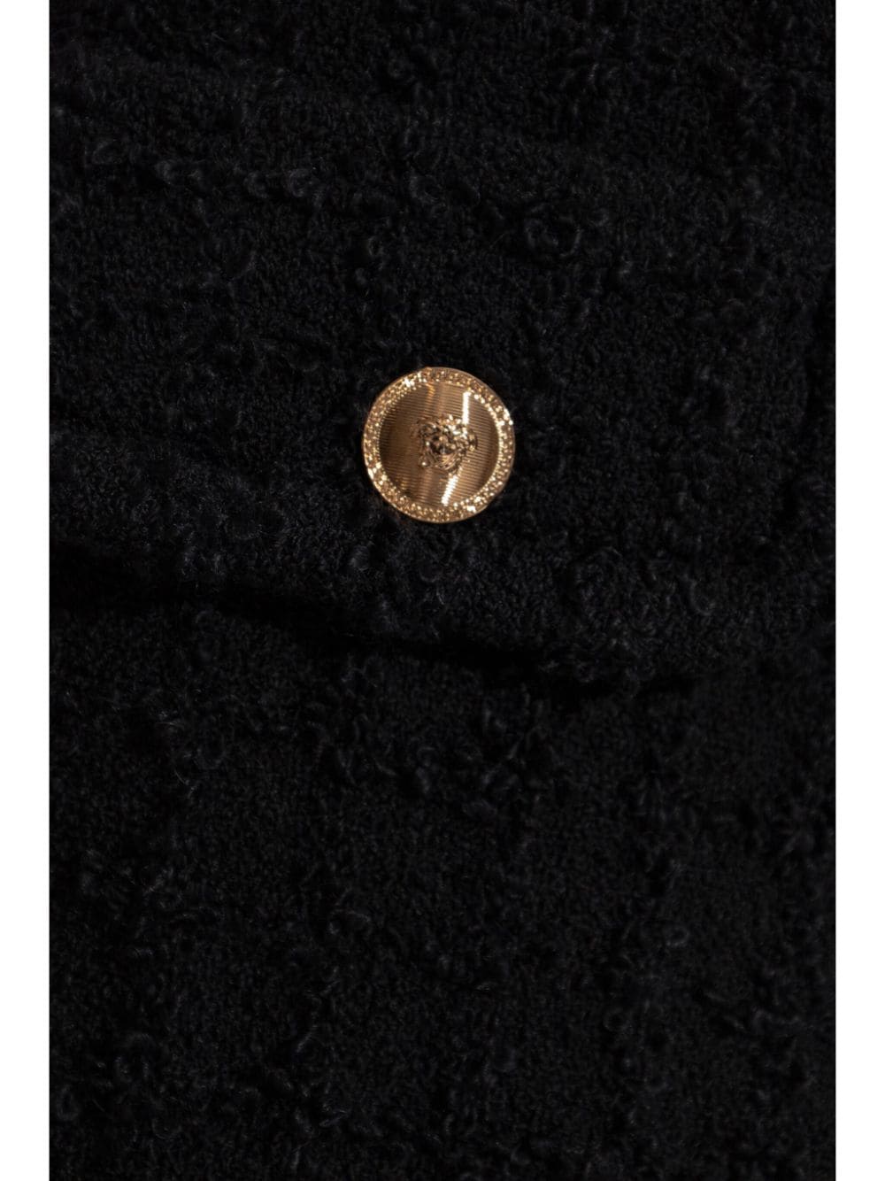 black virgin wool blend tweed decorative button flap two side inset pockets embossed gold-tone buttons unlined concealed fly and button fastening thigh-length Bouclé tweed shorts