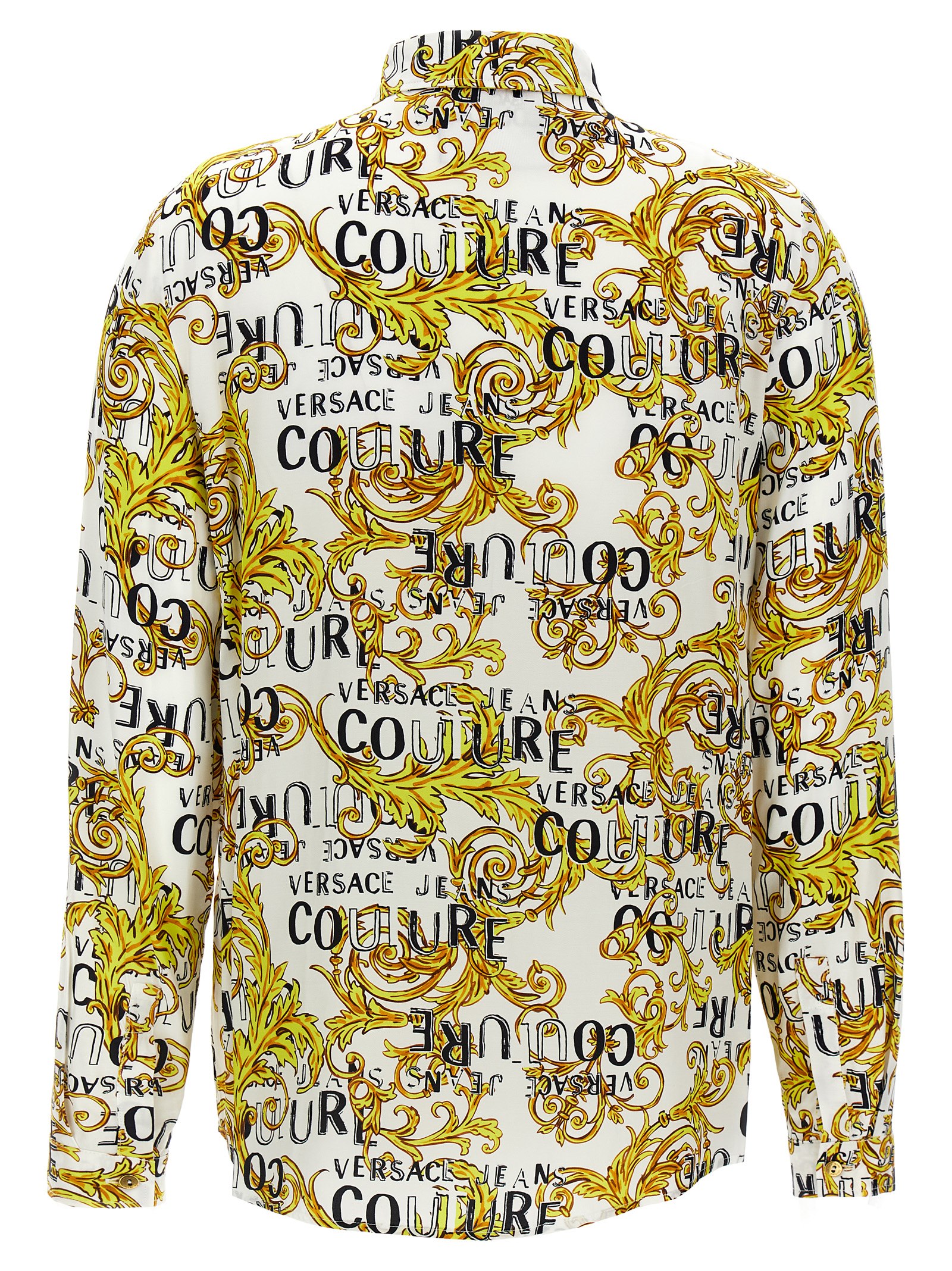 Viscose shirt with all-over logo print, front button closure, long cuffed sleeves.