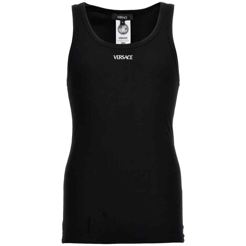 Tank top in stretch ribbed cotton with front embroidered logo and round neckline. Size and Fit – true to size fit