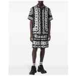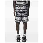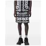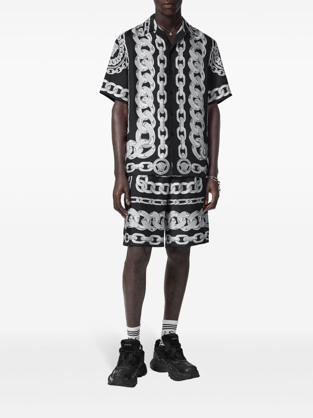 black/white all-over graphic print elasticated waistband two side slit pockets knee-length Medusa Chain silk shorts