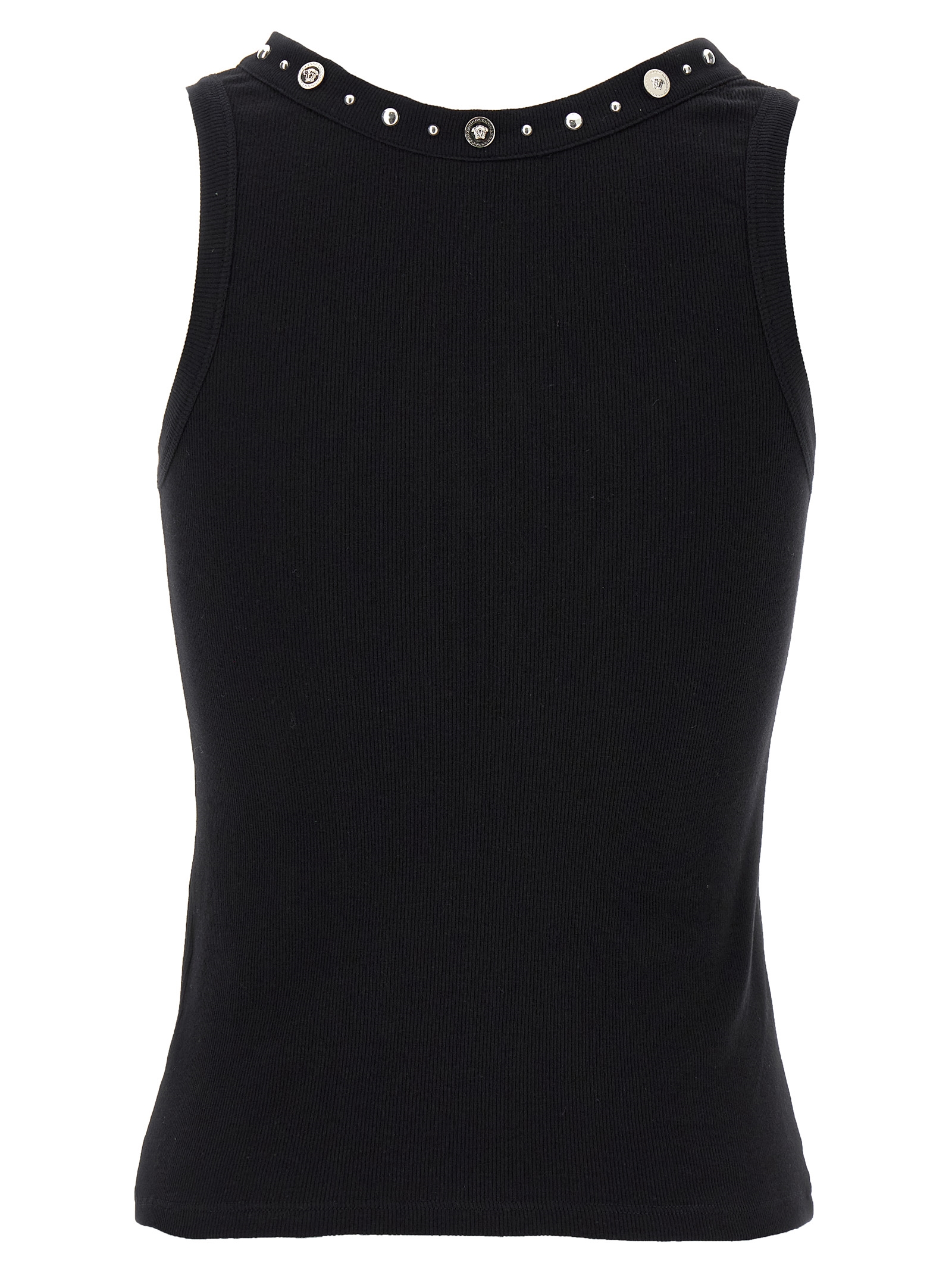 Ribbed stretch cotton tank top with round neckline with metal studs and ‘Medusa’ detail.