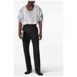 black cotton tailored design mid-rise embroidered logo front button fastening belt loops two side slit pockets two rear welt pockets straight leg Cotton trousers