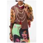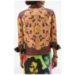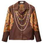 brown, graphic print, button fastening, long sleeves, buttoned cuffs. Printed silk shirt.