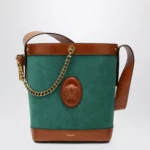 Versace Small Pivot bucket bag in green suede