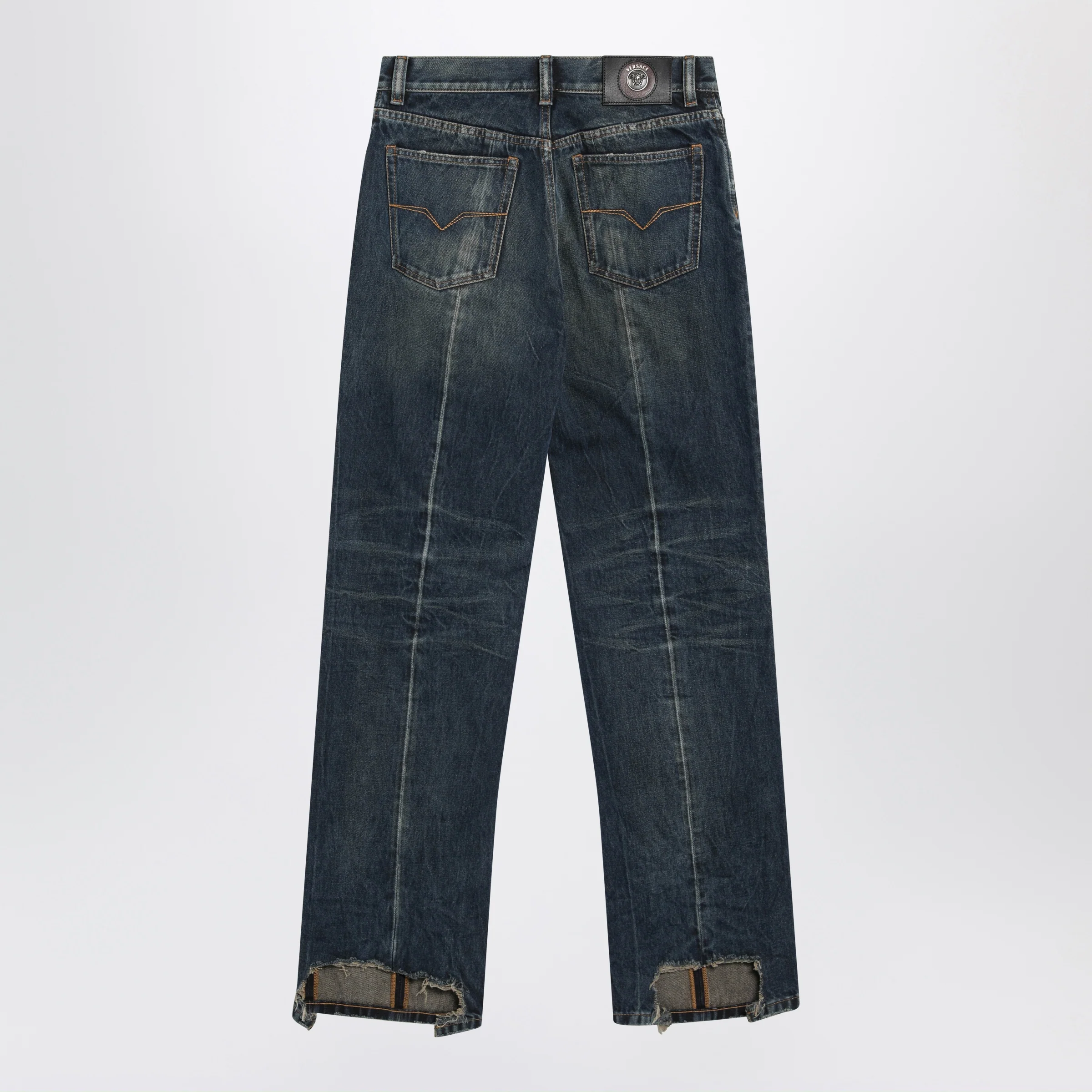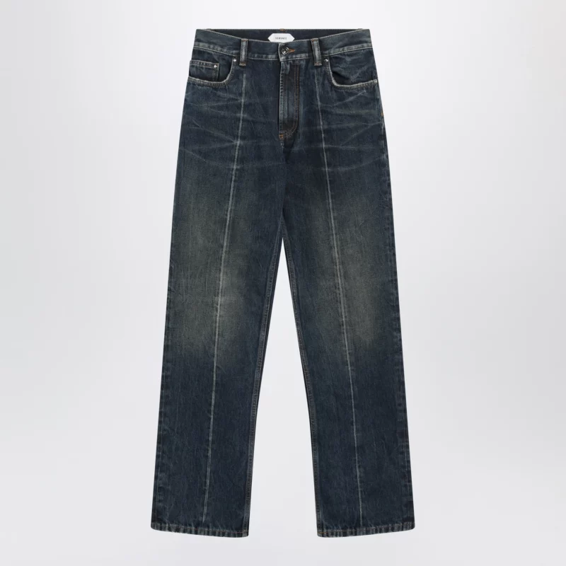Straight-leg stonewashed cotton denim jeans by Versace.