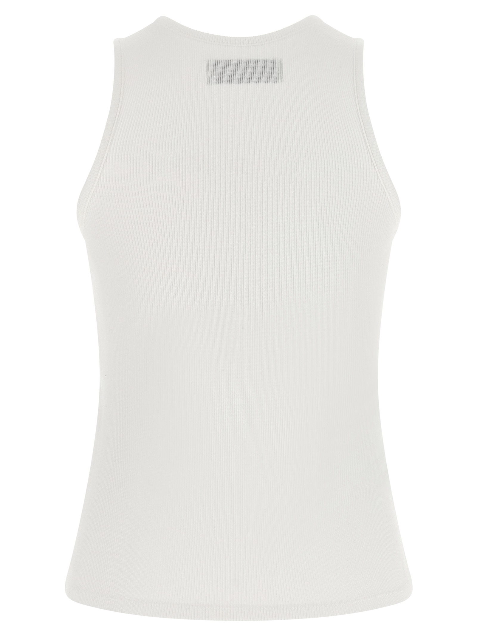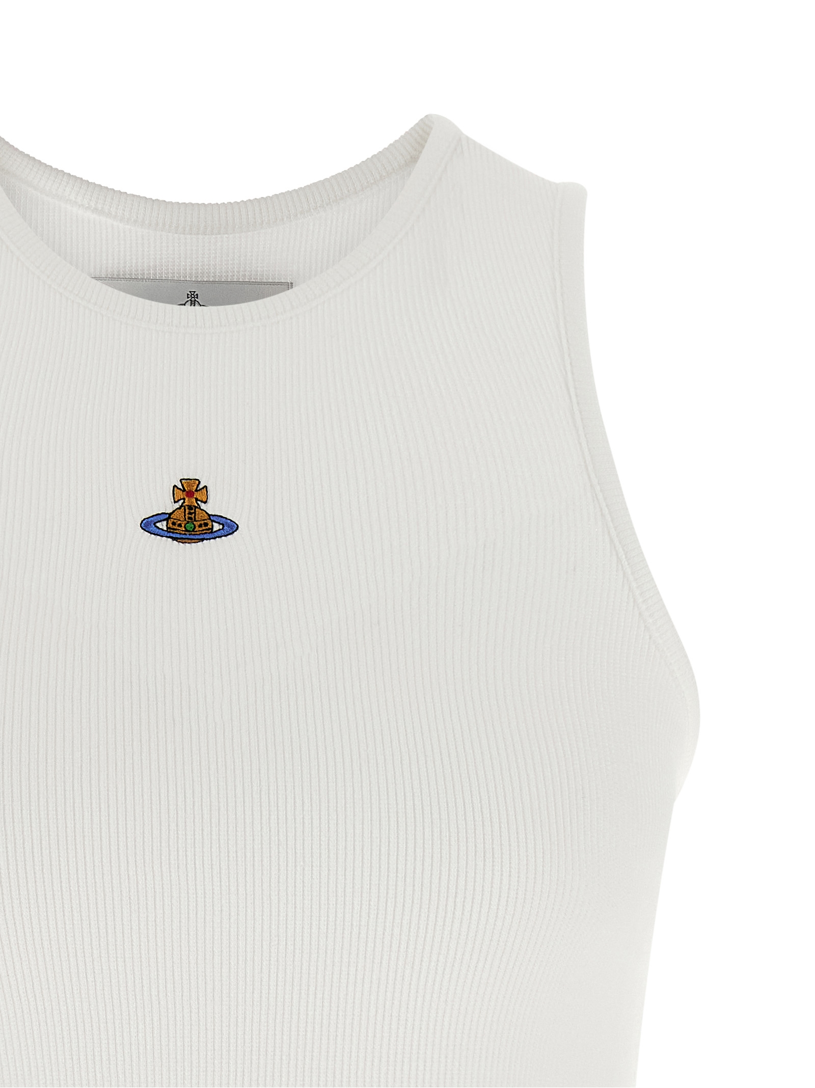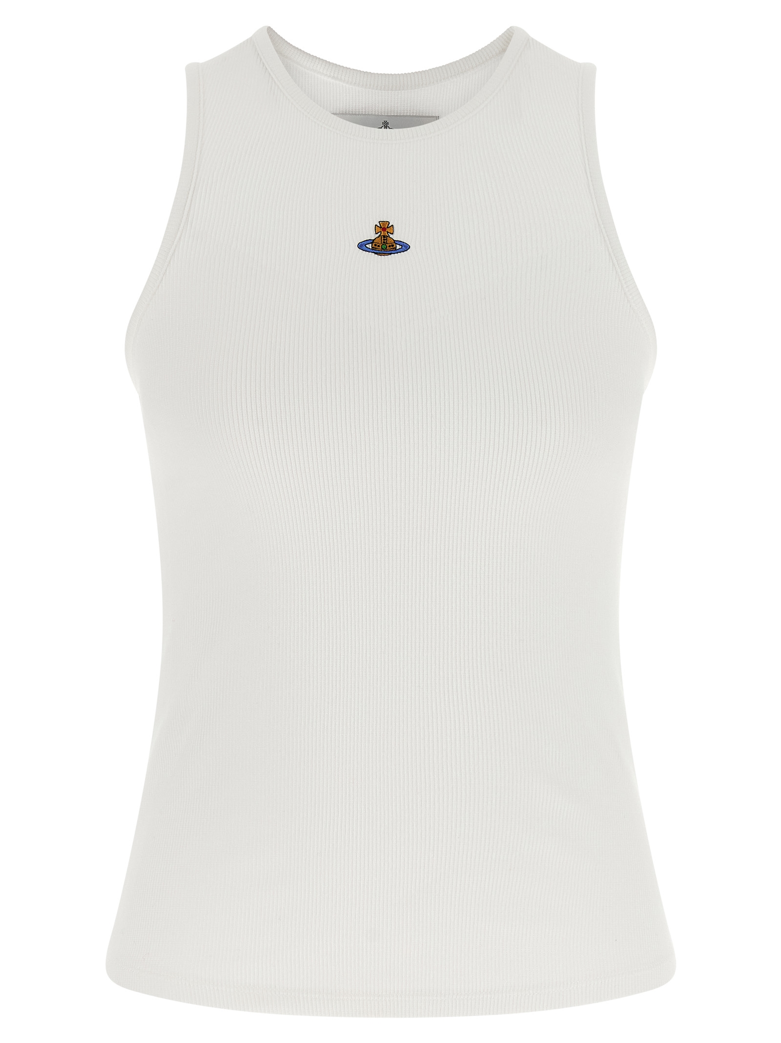 ’90’s’ ribbed cotton jersey top with ‘orb’ logo embroidery at the front, Rowing neckline. Size and Fit – True to size fit