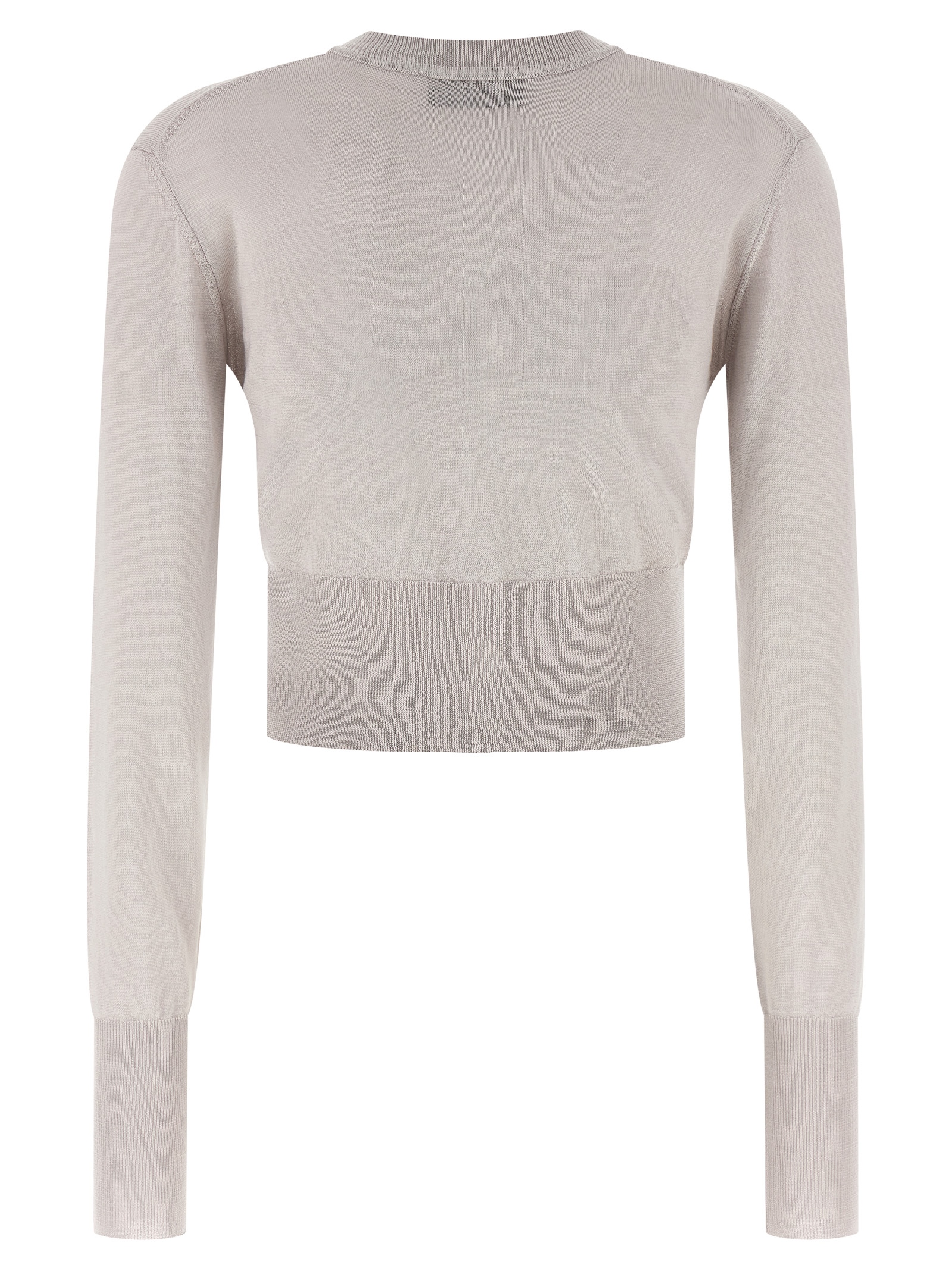 ‘bea’ cropped wool and silk cardigan with orb logo embroidery and front button closure, Round neckline, Long cuffed sleeves.