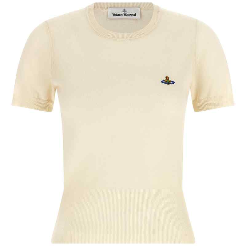 ‘bea’ cotton, Crew neck top with front ‘orb’ logo embroidery, Short cuffed sleeves, And headband on the hem.