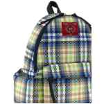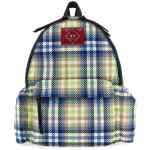 ‘george rucksack m’ nylon backpack with ‘fluro tartan’ pattern, Multi-pocket style, Front logo patch, Zip closure, Fixed handle, Adjustable shoulder straps. Size and Fit – W 37 x h 38 x d 14 cm
