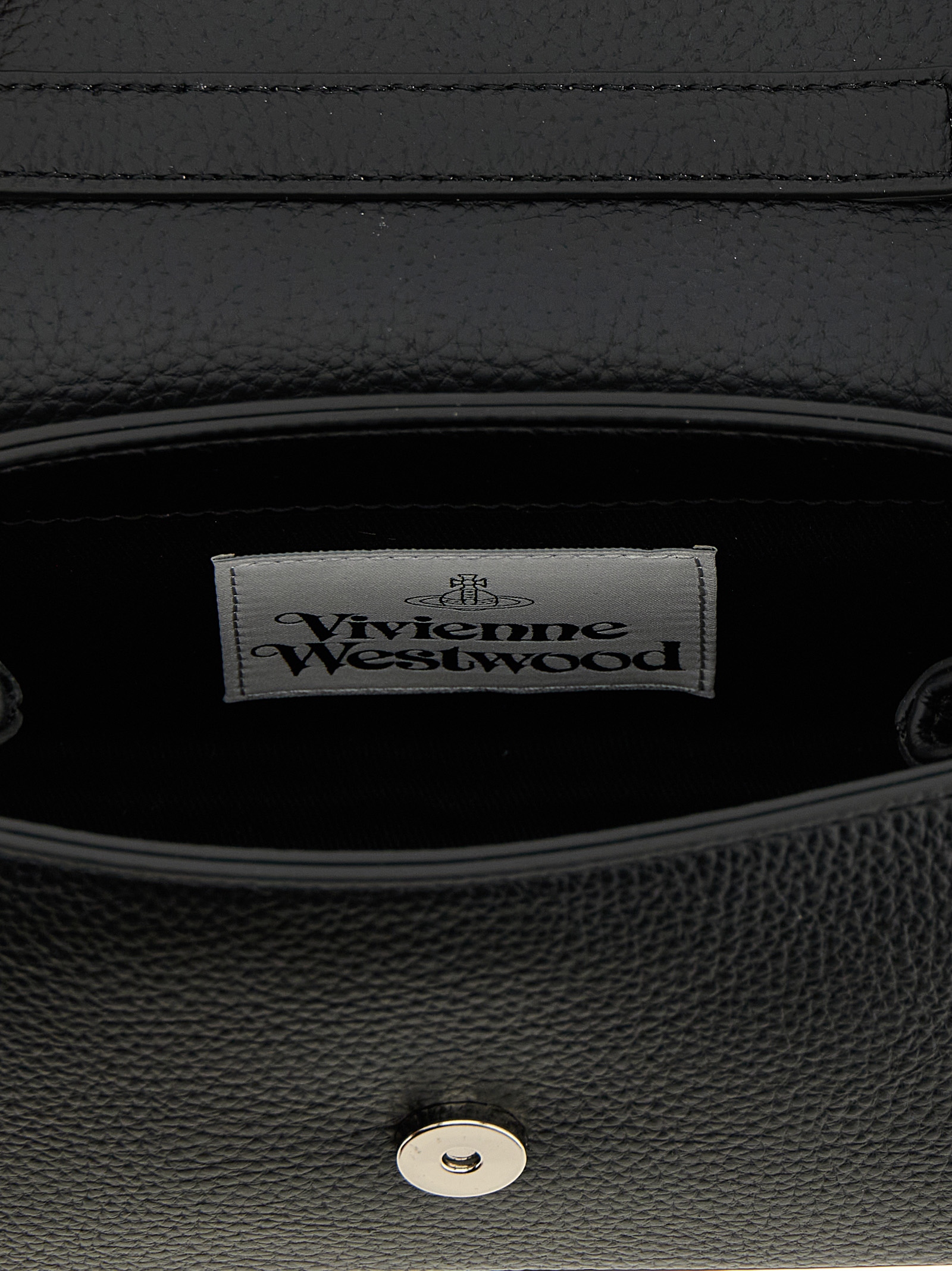 Small ‘Hazel’ shoulder bag in hammered leather-effect PU, magnetic flap closure with front metal Orb logo, removable handle, rigid base with metal feet, removable chain shoulder strap.