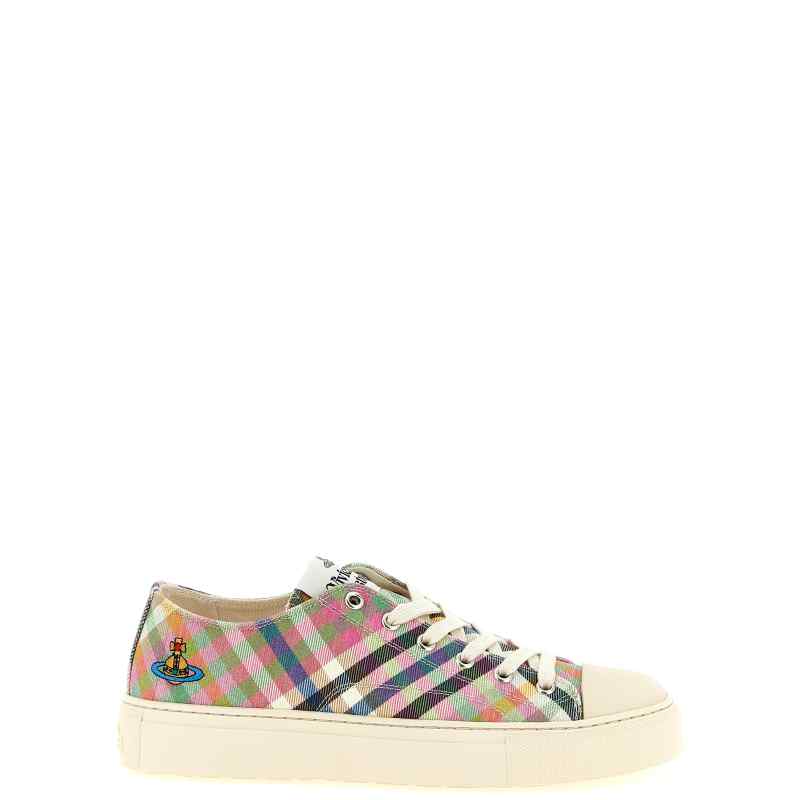 ‘plimsoll’ low-top sneakers in cotton canvas with ‘orb heather tartan’ pattern embroidery on the side, Logo patch on the tongue, Lace-up closure, Sole with ‘squiggle’ pattern and rubber toe. Size and Fit – Eu women