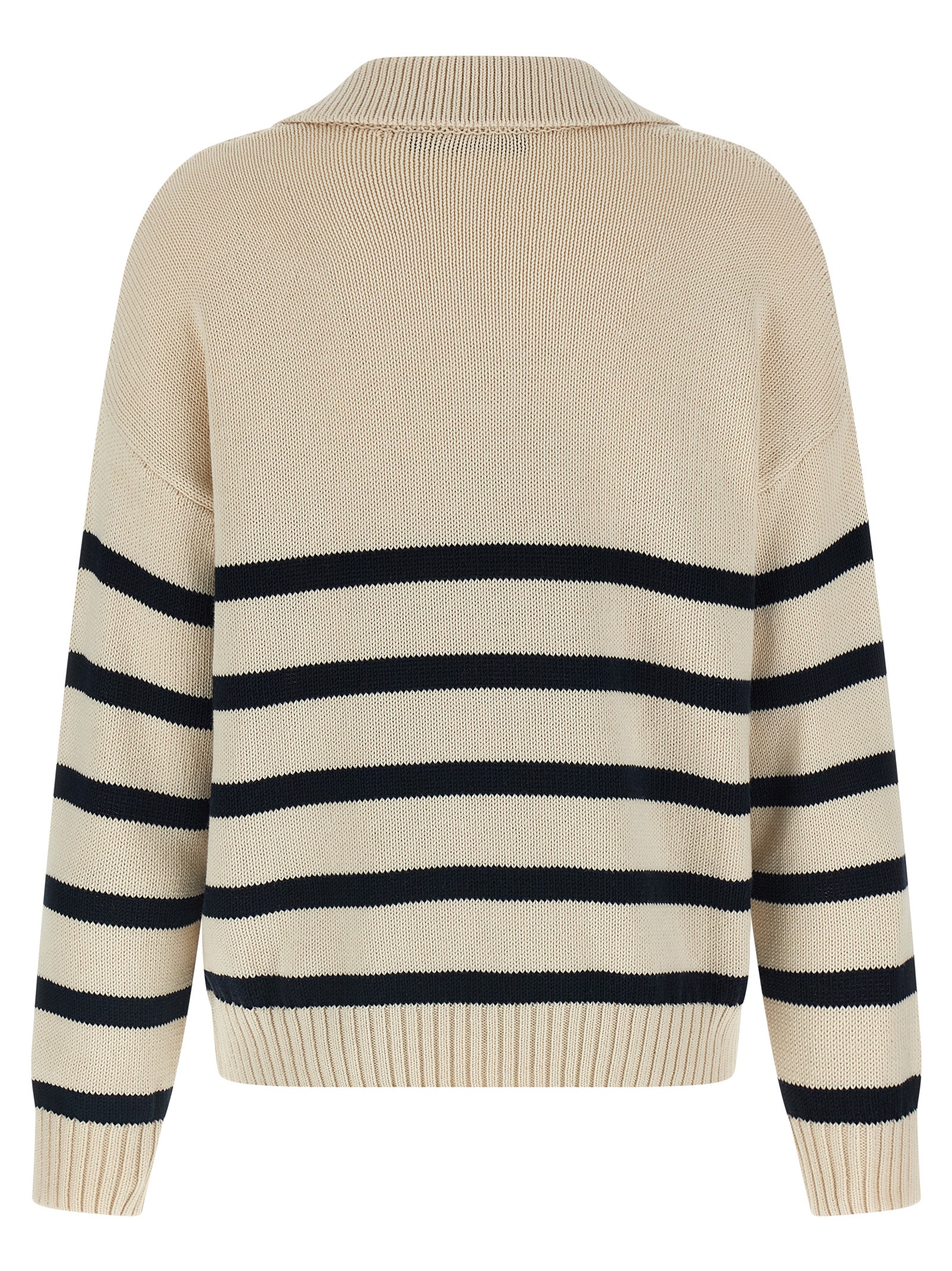 ‘WkdPanfilo’ striped cotton knit polo shirt with open collar, long sleeves with cuffs and dropped shoulder, and band on the hem.