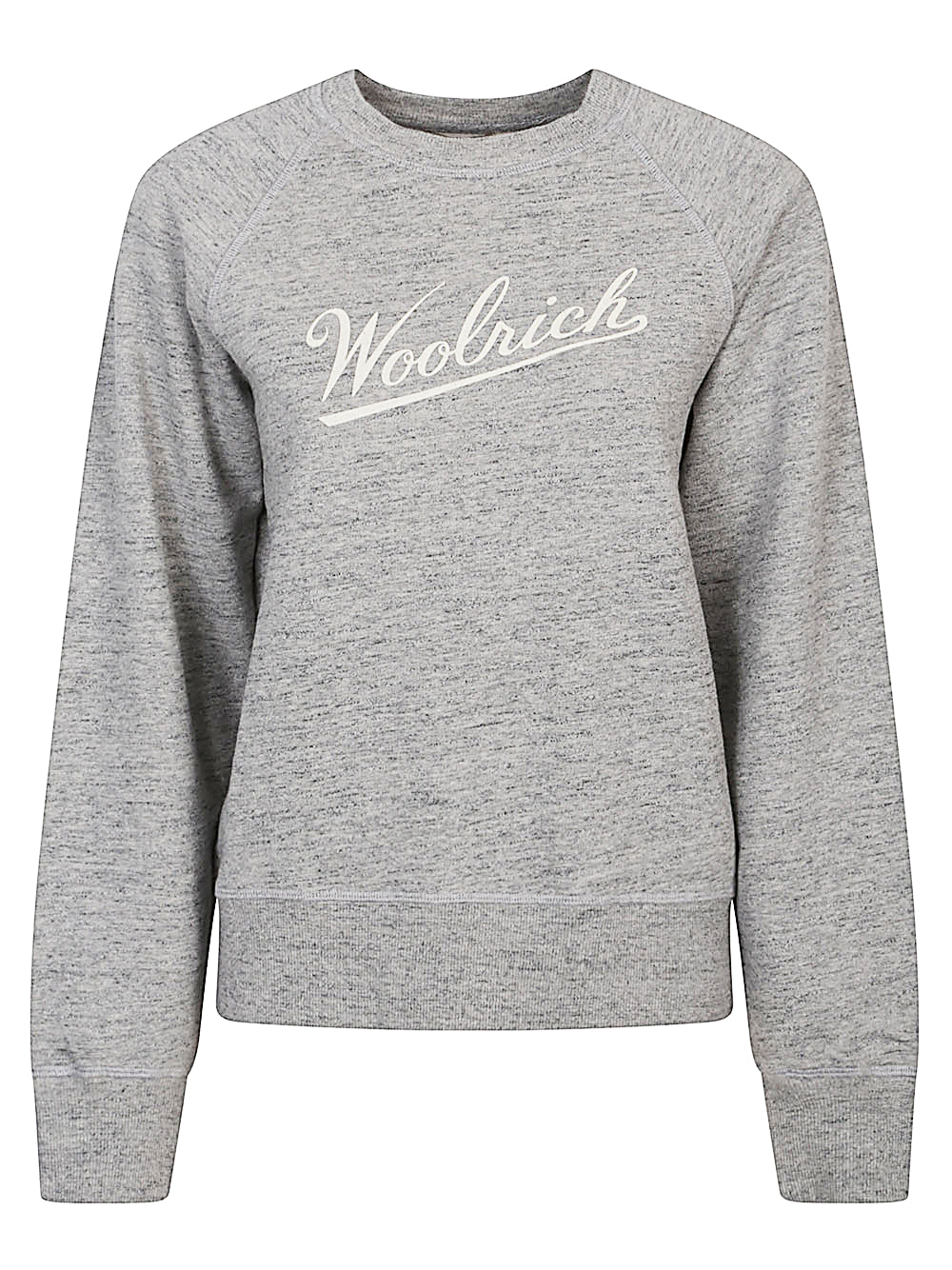 Gray sweatshirt, round neck, long sleeves, logo printed on the chest, straight hem. Logo cotton sweatshirt