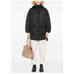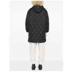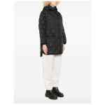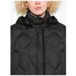 black quilted pattern hooded neckline snap button fastening welt pockets long sleeves Cape jacket
