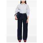 blue and white striped pattern button fastening point collar long sleeves chest patch pocket Striped cotton shirt