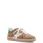 brown leopard print white stripe detail green heel tab lace-up fastening rubber sole Leather sneakers