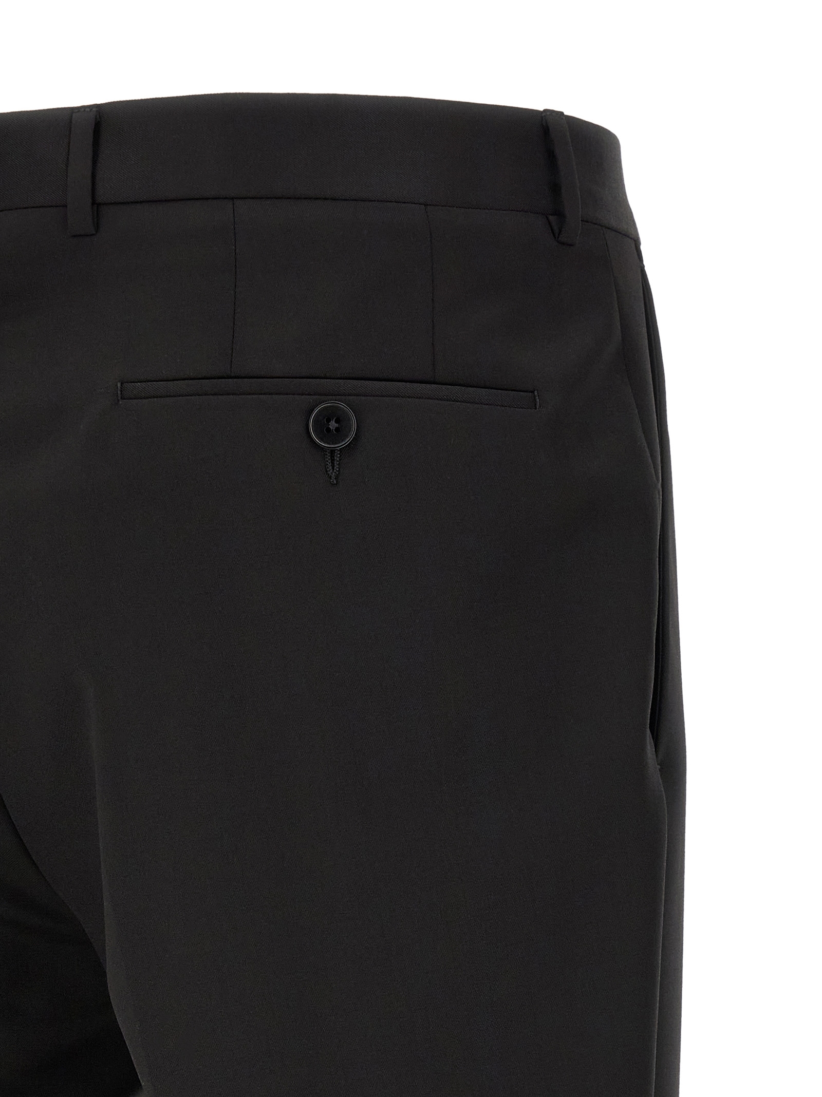 Wool and mohair blend dress consisting of single-breasted blazer with two front button closure, Mirror lapels, Breast pocket, Flap pockets, Viscose lining, Three inner pockets, Structured shoulder strap, Cuffs with opening buttonholes, Back slits and trousers with stretched pleat, Front ‘americane’ pockets, Back welt pockets, Hook and front button zip closure, Viscose lining, Hem on leg bottom to be finished. Size and Fit – true to size fit – DROP 8