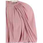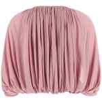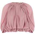 ‘alchemy’ fluid viscose blouse, Crop model, Cape construction with all-over draping, Crew neck with front v-out cut-out, Back zip closure, Asymmetric elastic hem, Lining.