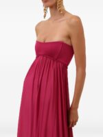 fuchsia pleated texture square neck adjustable spaghetti straps empire line rear zip fastening floor length Luna maxi dress.
