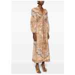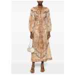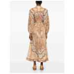 beige button front fastening V-neck long sleeves Wanderlust linen midi dress